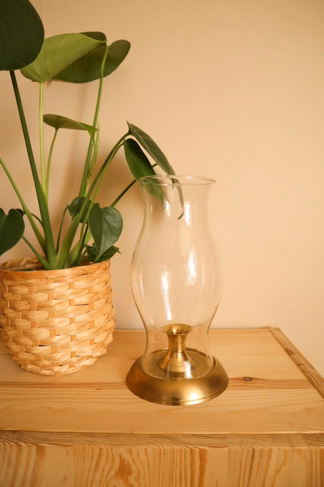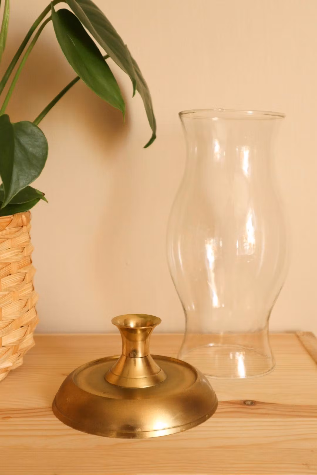 Mässingljusstake med glaskupa