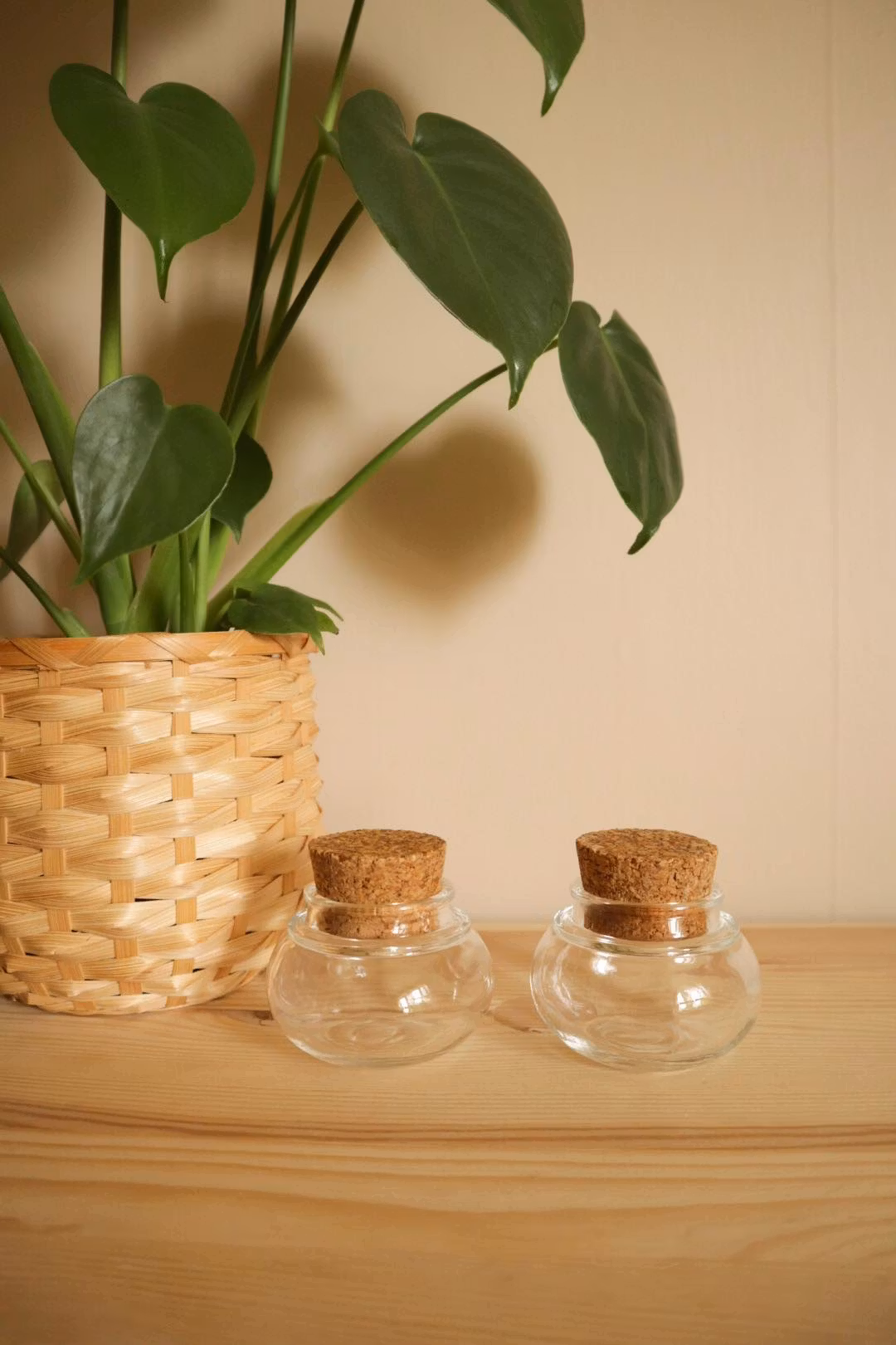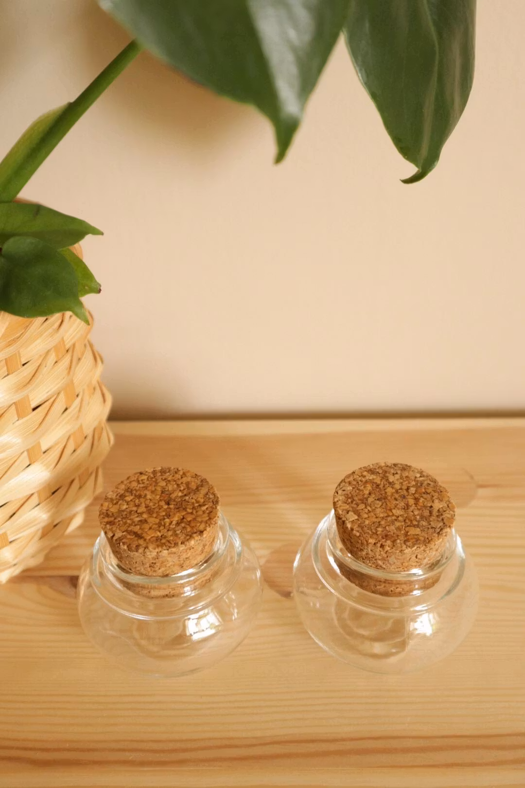 Två glasburkar med kork
