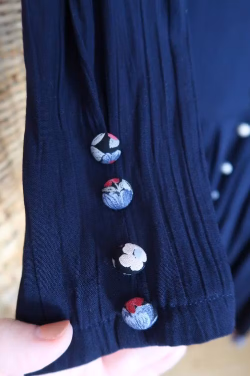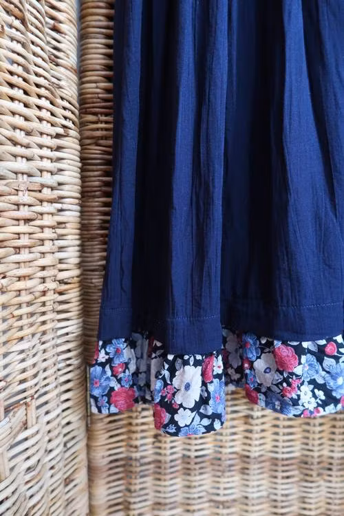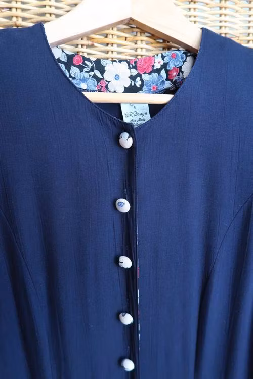 Blå klänning med blommiga detaljer