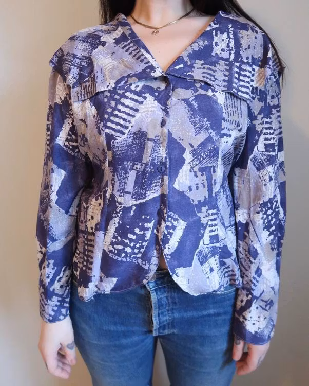 Härlig blå blus med axelvaddar.