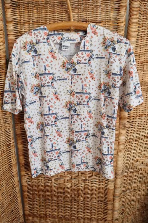 Blommig t-shirt.