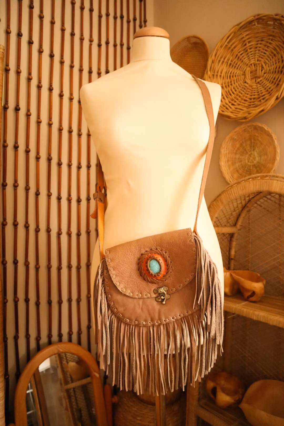 Brun fransväska i skinn