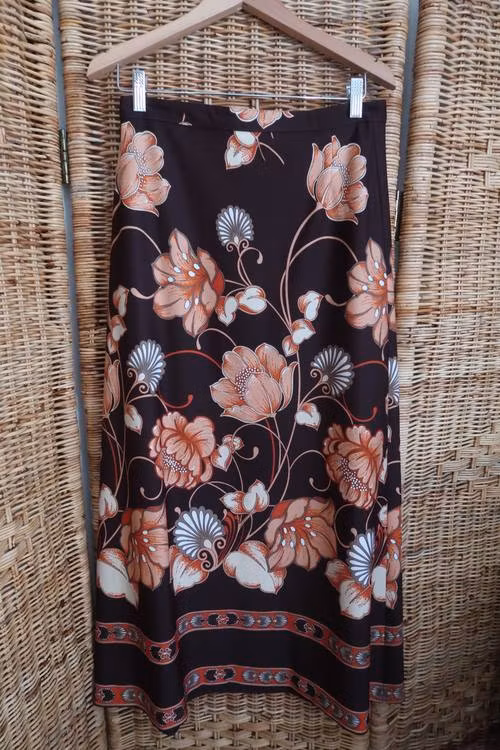 Brun kjol med blommor