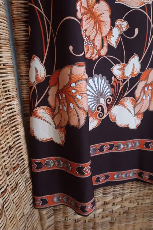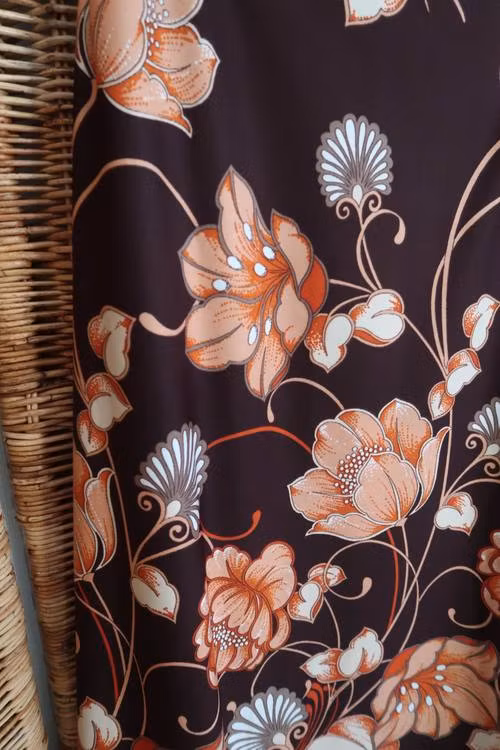 Brun kjol med blommor.