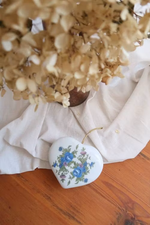 Dofthjärta med blå blommor.