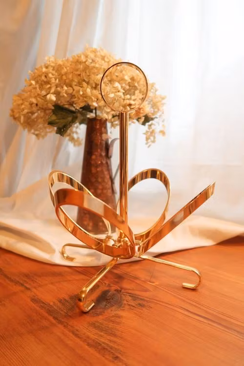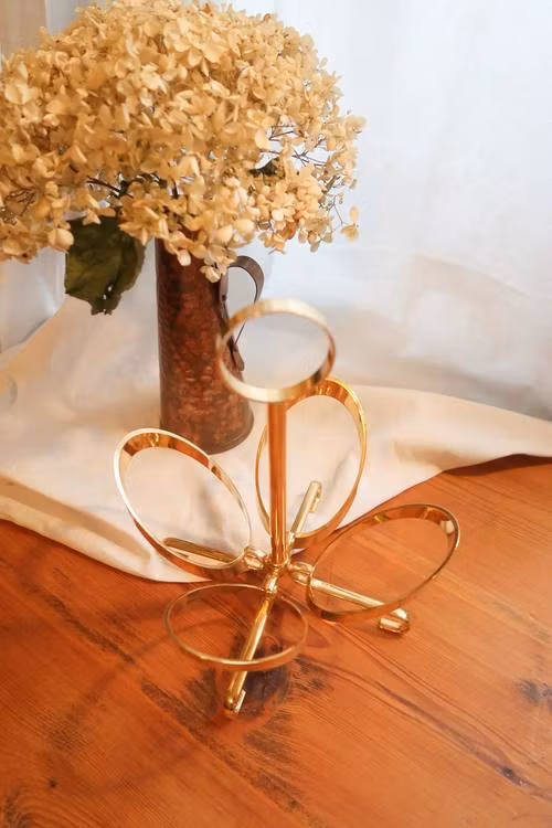 Guldfärgad flaskhållare.