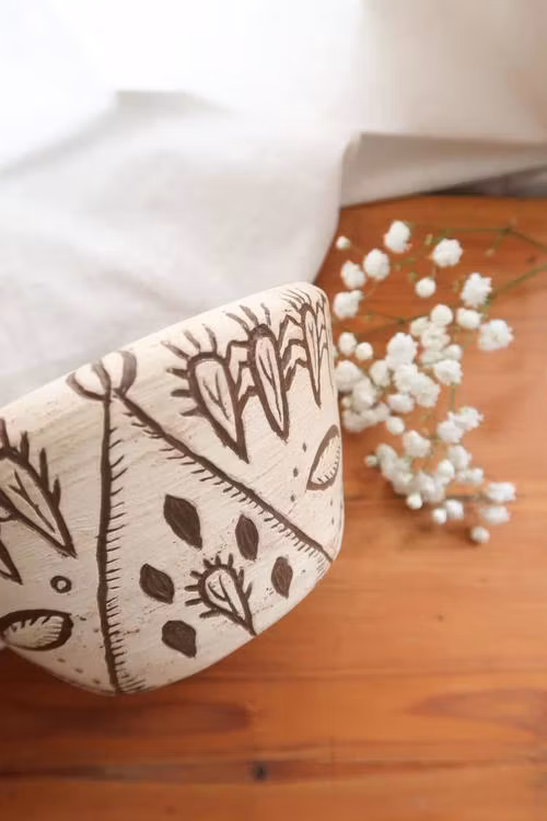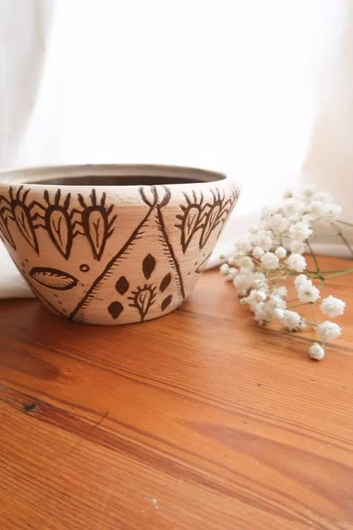Handgjord skål med kaktusar