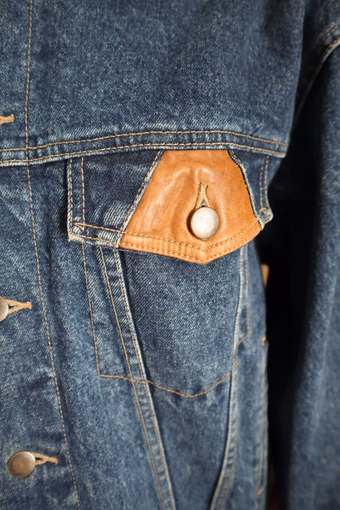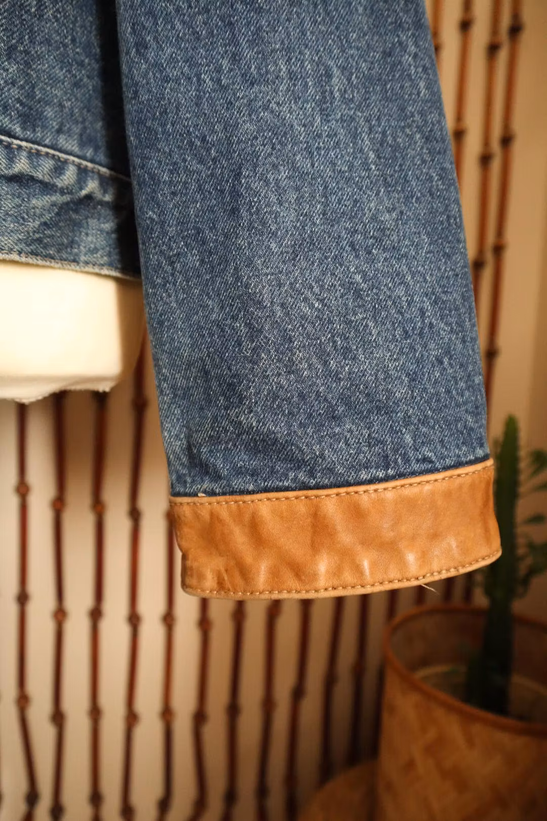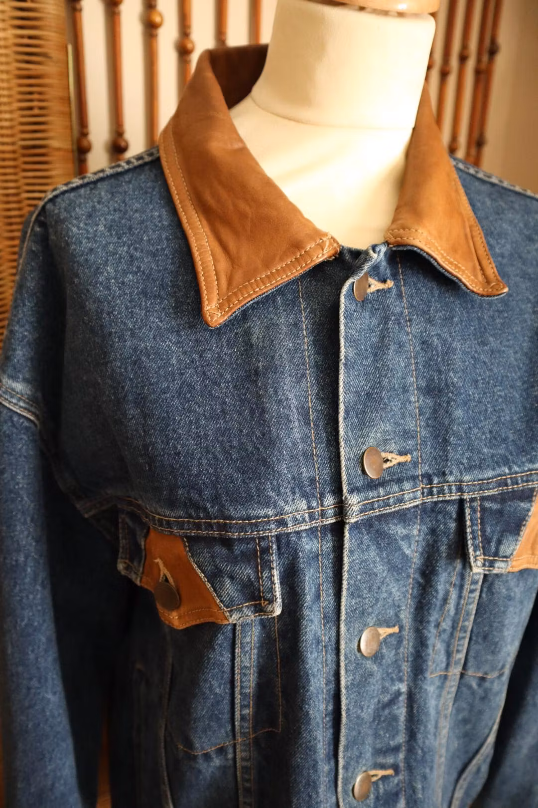 Jeansjacka med bruna skinndetaljer