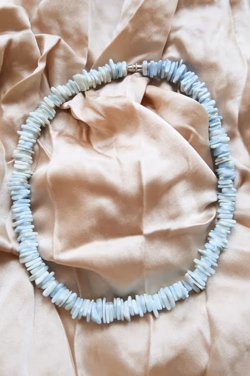 Ljusblått snäckhalsband.
