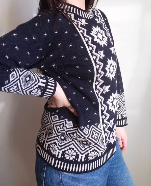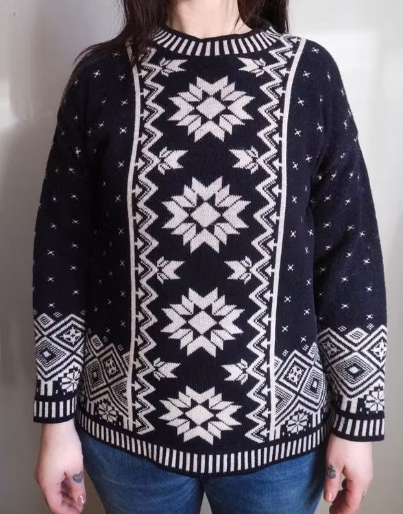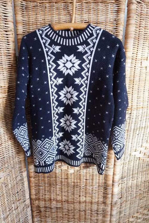 Mörkblå/vit tröja med mönster.