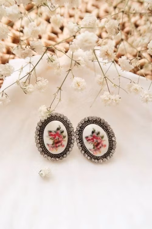 Örhängen med blommor & stenar.