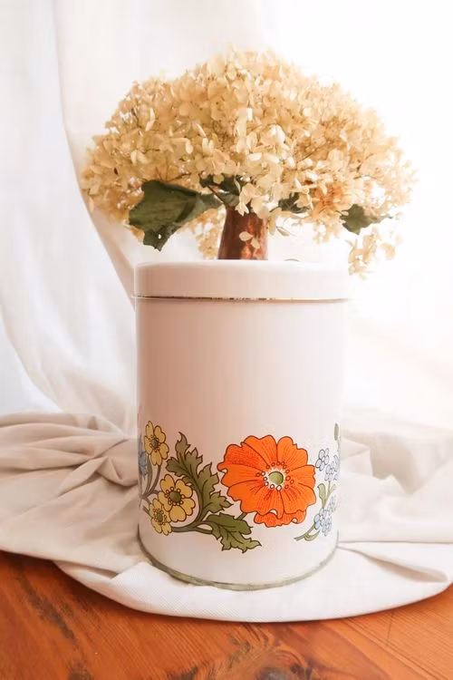 Plåtburk med blommor
