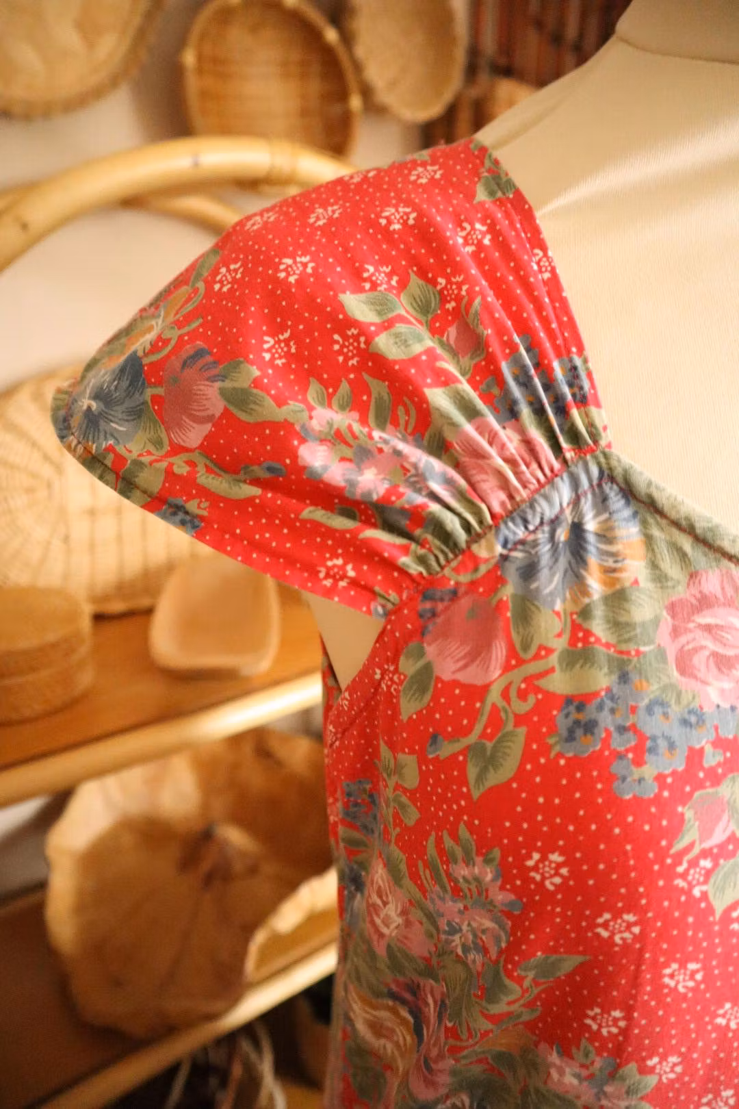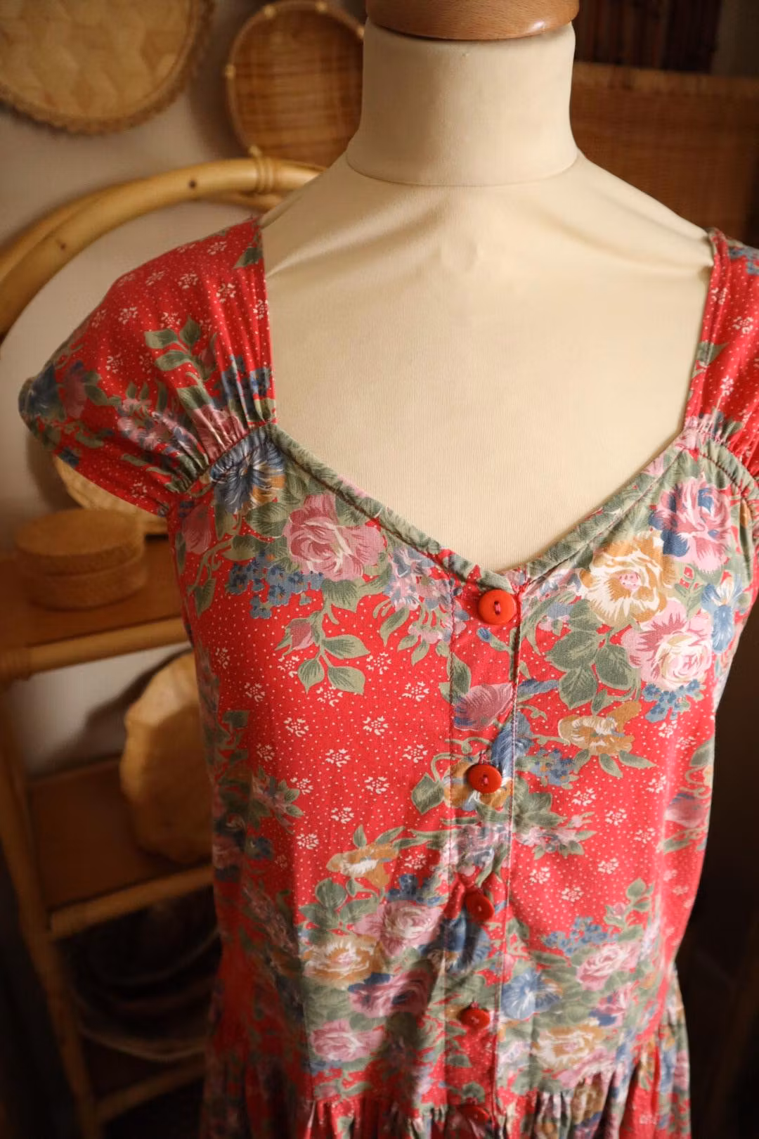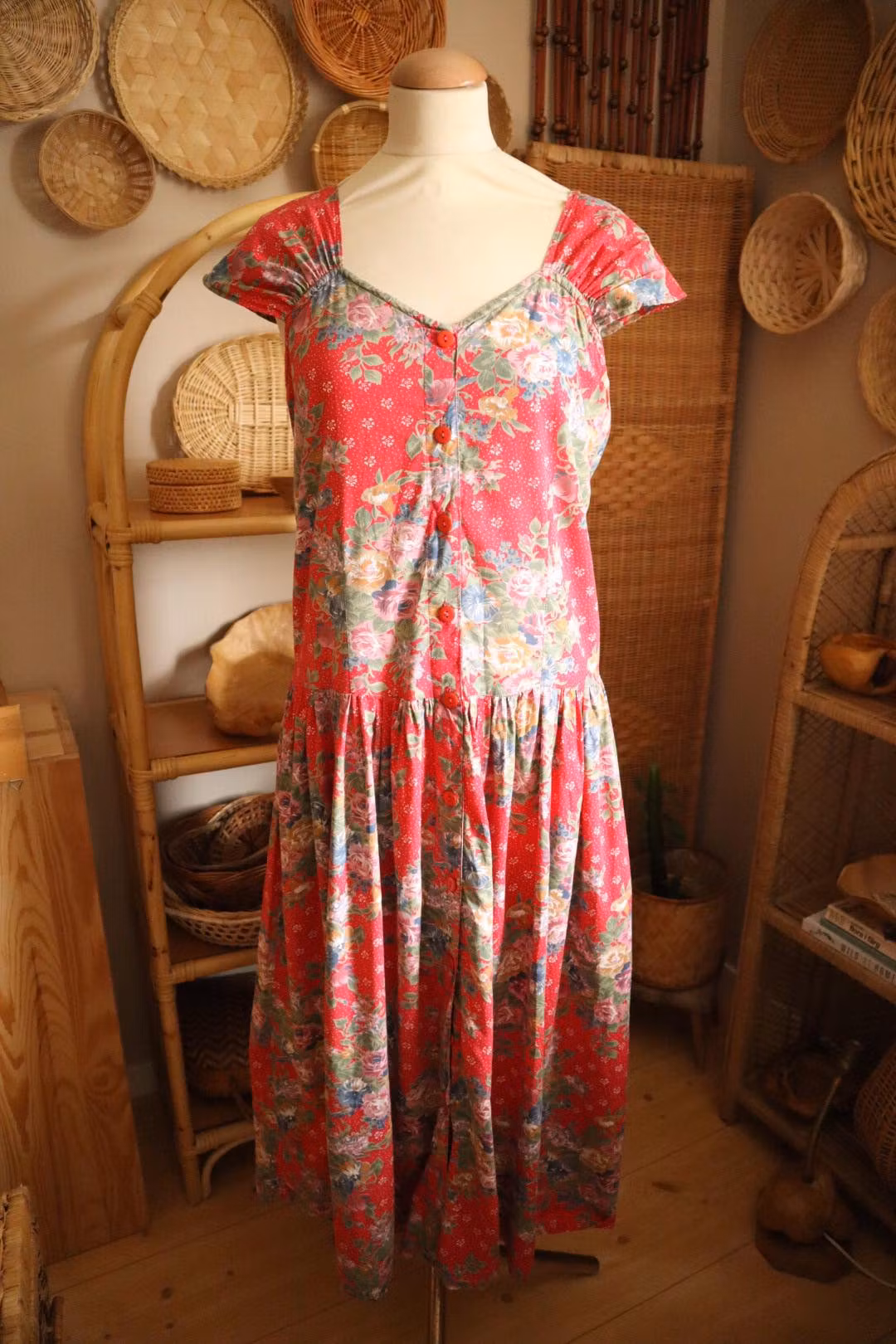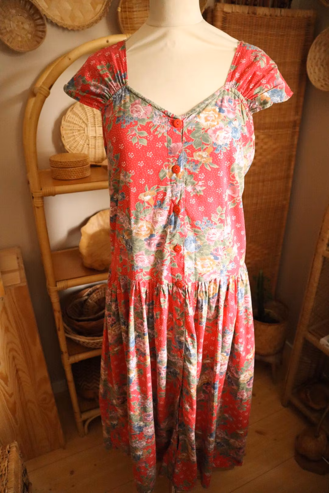 Röd blommig vintage klänning