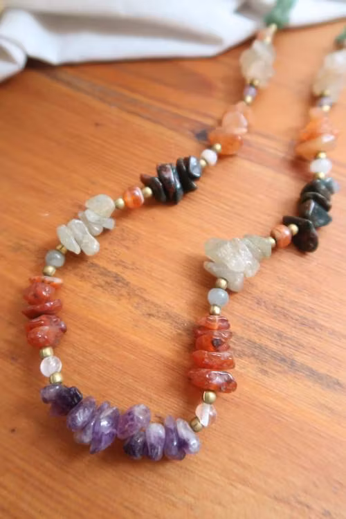 Halsband med olika stenar.