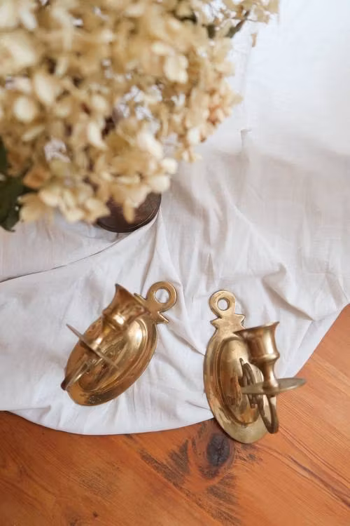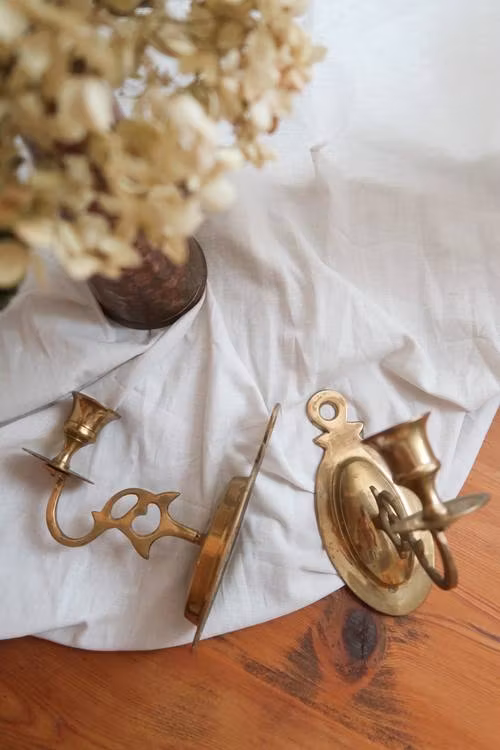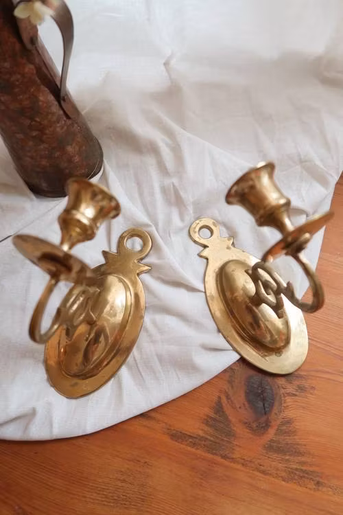 Två vackra väggljusstakar i mässing.